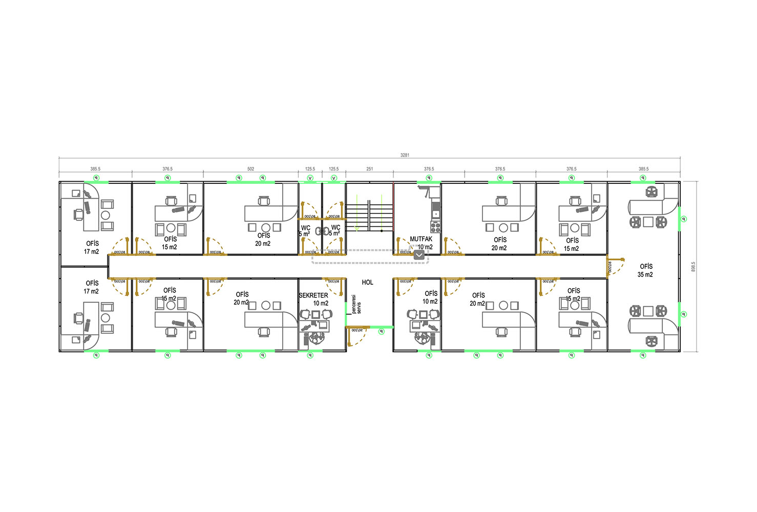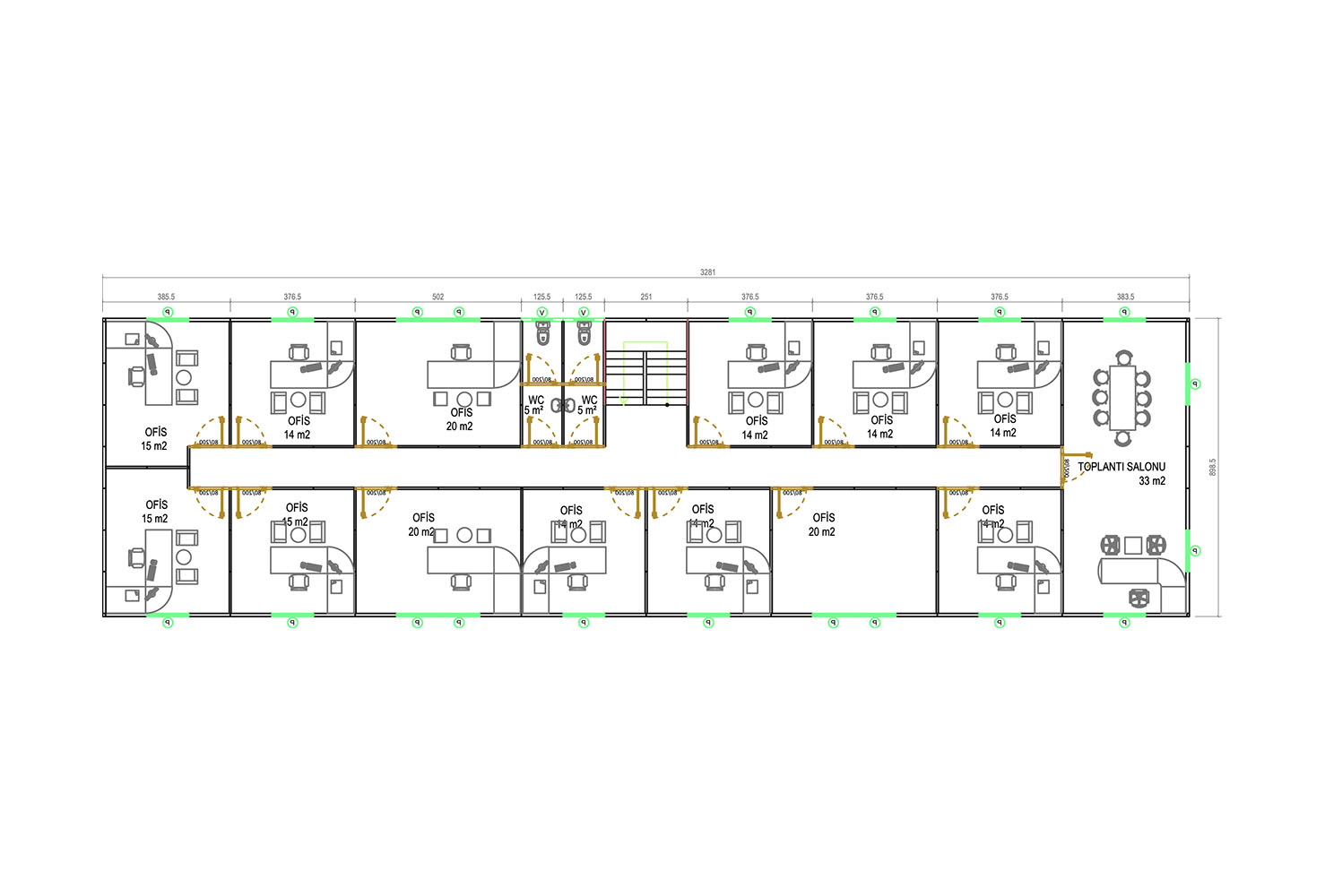 İki Katlı Prefabrik Ofis - 590 m², büyük ölçekli işletmelerin ofis ihtiyaçlarını karşılamak için tasarlanmıştır. Çelik gövdesi, depreme ve zorlu hava koşullarına karşı dayanıklıdır.