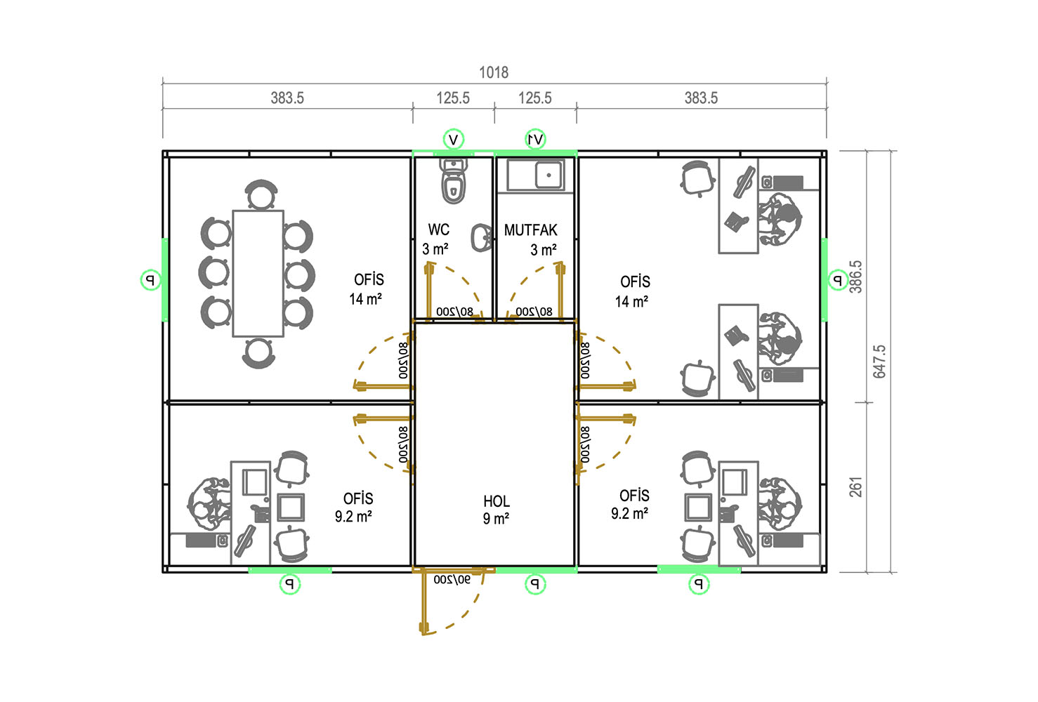 Modern ve ergonomik tasarımı, ofis içindeki verimliliği artıracak şekilde planlanmıştır. İç mekan, farklı departmanlar veya çalışma grupları için optimize edilebilir. Elektrik, su ve havalandırma tesisatları hazır olarak sunulur. Hızlı montaj özelliği sayesinde kısa sürede kullanıma hazır hale gelir.